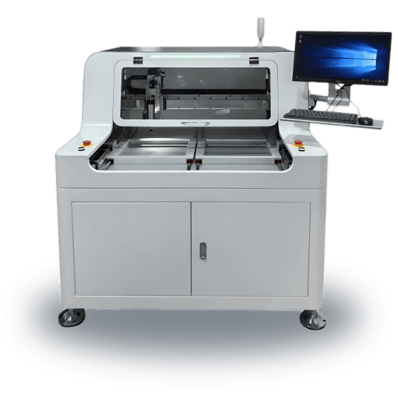 本設(shè)備主要利用銑刀高速運(yùn)轉(zhuǎn)將多連片式PCB按預(yù)先編程路徑分割開來(lái),取代人工折斷或V-CUT或PUSH的切割瑕疵,有效的降低分板時(shí)產(chǎn)生的應(yīng)力,并且分板切割面光滑無(wú)毛刺